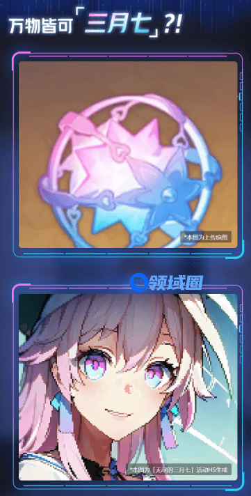 如果上传的是“纠缠之源”图片,最后转化出来的三月七就会变成像素风,事实证明这玩意是真的会成精。