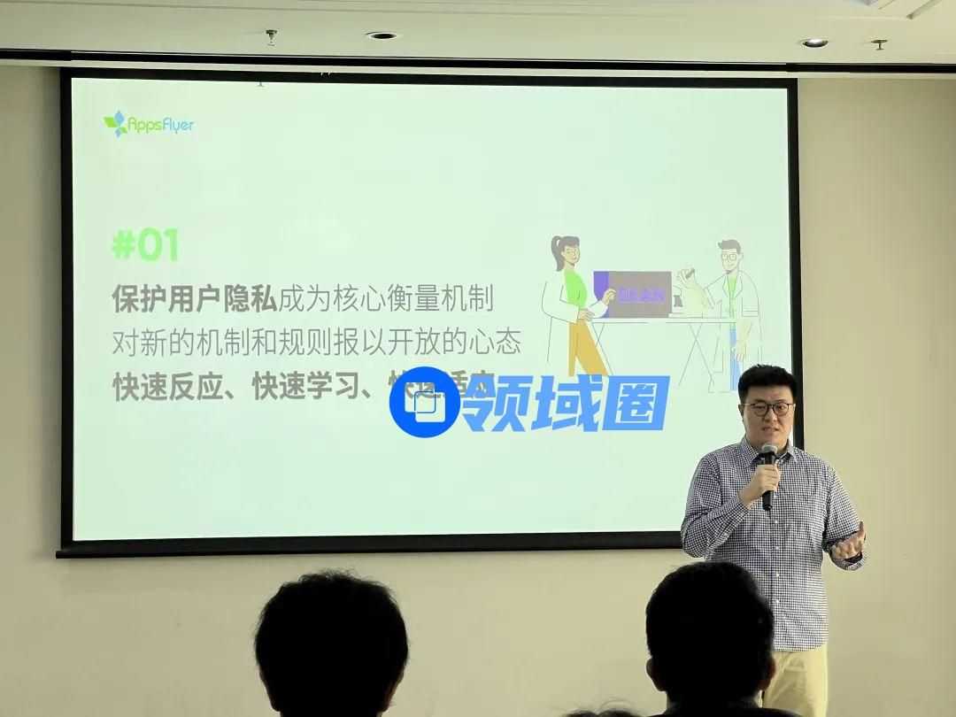致辞完成后,就来到了干货分享环节,由 AppsFlyer 大中华区内容营销经理Mars Zhao为现场参会的小伙伴们带来了《加速再出发-2023 手游出海营销洞察》的主题演讲。
