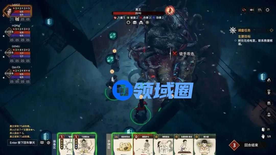 游戏的关键道具也是卡牌,玩家的手牌上限可达10张,每回合玩家都会抽取一张牌,卡牌有不同的类型,每张牌也有迥然不同的效果,在游戏过程中卡牌承担相当大的一部分策略性,让跑团在除开探索之外也多玩家需要思考的地方。