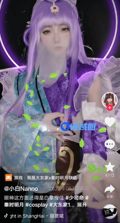 比如此前在《狐妖小红娘》联动中,《我是大东家》通过“情牵一线·缘结东家”大赛向玩家征集因游戏结缘的情缘故事,从营造“游戏归属感”为目标引导玩家UGC内容产出。另外《我是大东家》与《秦时明月》IP联动时,也在抖音端发起了#一周年整活#调动玩家参与创作,通过抖音达人营销创作COS一键变装、玩梗真人剧情、搞怪科普flash、游戏攻略等社区内容,既打造了活跃的社区氛围,也将游戏内容潜移默化地传递给了潜在用户,从而达到破圈营销的效果。