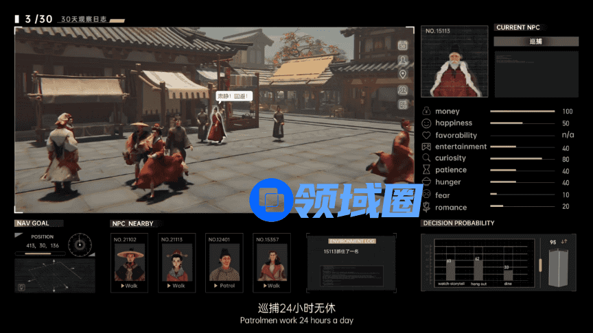 而超参数科技所发布的《活生生的长安城》这个视频,它的底层逻辑并不是靠堆人力、物力与时间来构造一个真实的世界,而更像是创造出了NPC与NPC之间的“涌现式交互”。