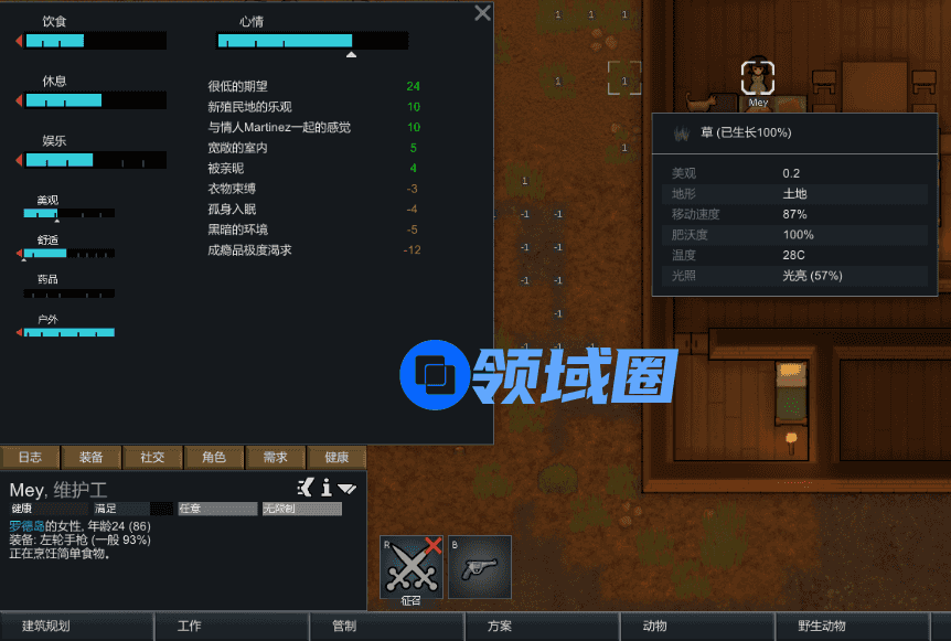 (类似系统代表作之一《Rimworld》,每个角色都有十分详细的各种数据,并且会根据数据自由行动、社交,玩家需要根据数据满足他们的需求)