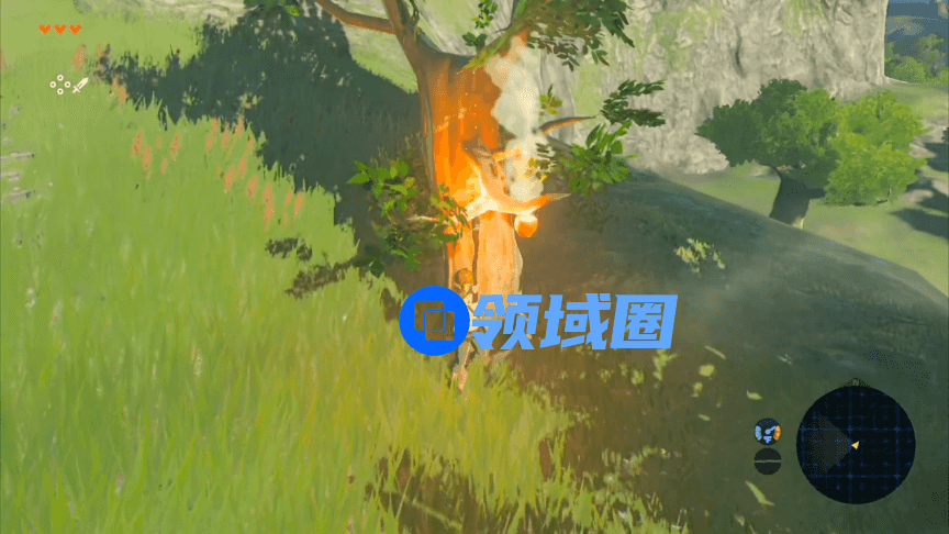 那更大的问题来了,就像《旷野之息》即使做出了“涌现式交互”:火能使一些事物燃烧,木头燃烧后会飘起灰烬、果实燃烧后会变成灰色、肉类烤熟后会变成烤肉、草地被燃烧后会留下灰灰的痕迹。但是“燃烧的动画”“灰烬”“烤熟的果实”“烤肉”“灰色的草”这些实物,还是要任天堂手动做出来的。