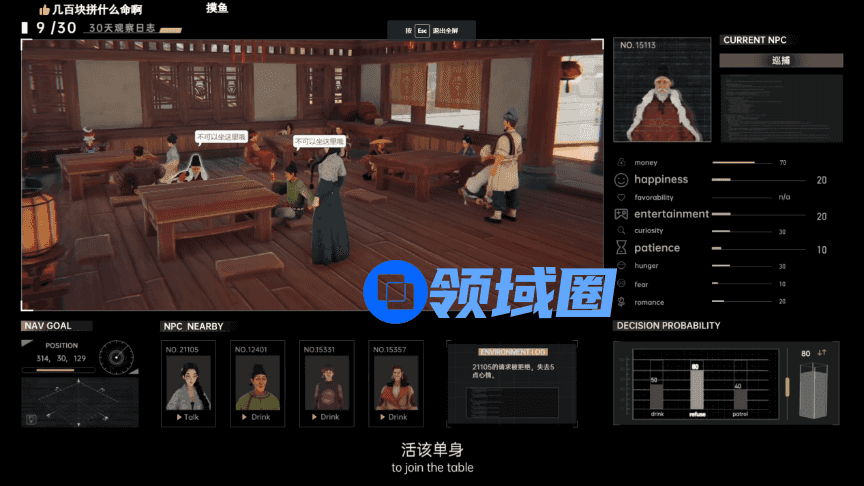 此外,每个NPC都有自己独立的性格、数据,这样的设定也是屡见不鲜,就如上文所提到的《赛博朋克:2077》,玩家可以实时查看几乎所有NPC的身份、所属势力、个人能力、犯罪情况和其他生涯,几乎每个人都是由随机词条组成,而非制作者手工做成,此外,育碧《看门狗》系列也有几乎相同的设计。而且,仔细看该视频中所演示的NPC的各项数值,会发现除了“money”和“职业”这两项,几乎其他所有的数值都表示NPC的心情,而一个活生生的人显然不仅仅由心情构成。