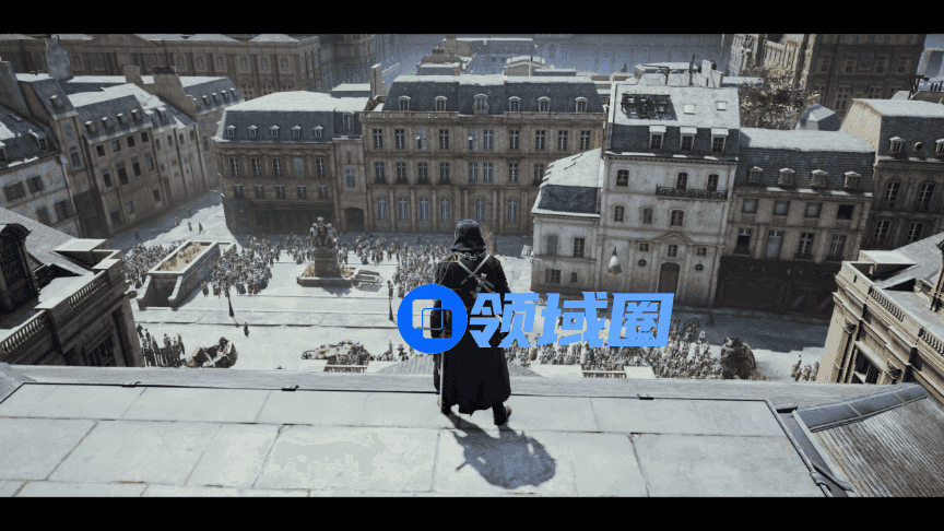 育碧2014年发售的《刺客信条:大革命》虽然看上去是万人同屏,实际上这个“万人”里,很多都是以“一团人”为一个单位,实际上画面中出现的就几十个单位,这还是《大革命》的AI行动模式十分单一的情况下。