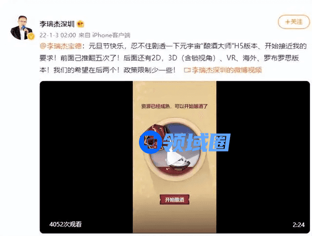 并且,如果到时候拿出来的实际产品又是第二个《酿酒大师》,那我相信这对“AI”这一概念在投资市场的价值,又是一次很大的打击。