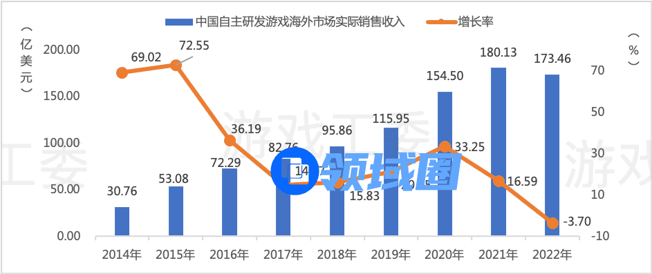 根据中国游戏产业年会发布的《2022年中国游戏产业报告》显示,中国自主研发游戏海外市场实际销售收入迎来了自2018年的首次下降,整个2022年实际销售收入为173.46亿美元,同比下降3.7%。下降原因之一,在于中国手游出海收入集中的几个国家,如美国、日本、韩国、德国等均出现了收入下滑的现象,而中东、非洲、东南亚、拉美等地区的新兴游戏市场虽有巨大潜力,但仍待开发。