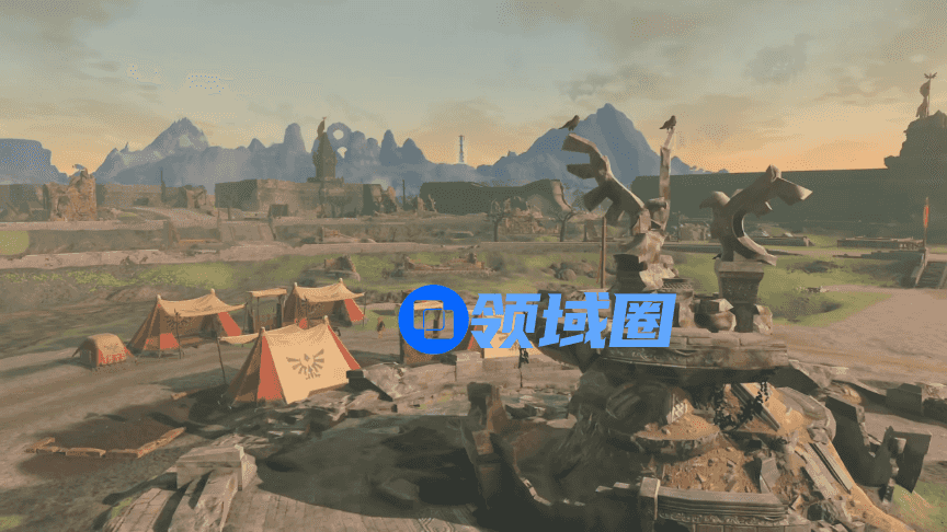 58秒,王城周边场景,出现了很多营帐,这大概是前作中打败加农后,海拉尔大陆恢复生机的表现,结合前面的场景,可以得知,不管本作是否真的如塞学家们所推测的那样会有回到过去的时间线,至少打败加农之后的时间线是肯定存在的。
