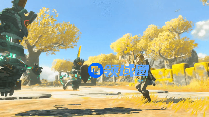 PV的第25秒,小型守护者正在砍树,结合之前放出的余料建造机制,可以推测这代怪物可能会自己动手获取资源并制成武器与林克作战。
