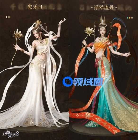 同时,这套时装也公布了细节和染色效果图,胸前织金刺绣的莲花宝相花藻井纹,是圣洁光明的象征,饱含吉祥的美好寓意。而借由游戏内的海量服饰、染色玩法,又可创造出多种风格,或纯白圣女,或明艳精魅,或异域舞姬,或赛博古风,为玩家提供尽情享受自由穿搭的游戏体验。