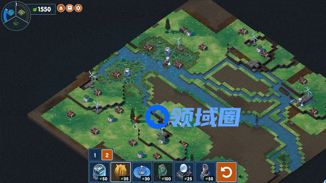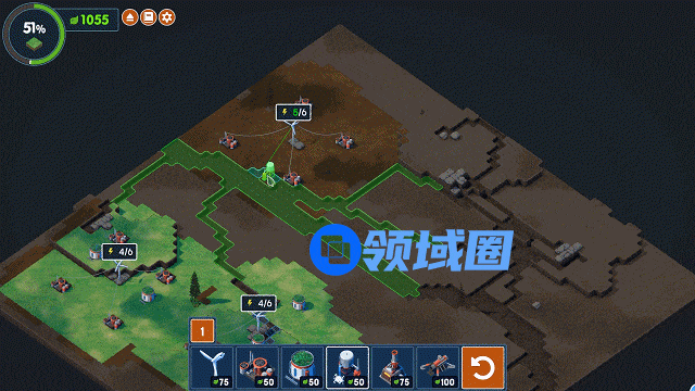 有时为了获得更好的供电位置,改变地块属性很重要。放置风力涡轮机时,为了获得更多岩石地块。玩家可在河边放置钙化机让附近植被地块变成岩石。岩石转移机的加入,像《植物大战僵尸》的豌豆射手一般,“嘭”一声给岩石换个位置。或者用地震引爆装置炸开土地,让潮汐涡轮机有放置位。