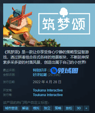 除了《伊始之地》,已有多款非典型城市建设类的禅意游戏获得绝佳销量和好评,如《筑梦颂》《城镇叠叠乐》等。如果仅以“禅意”为标签,或许国风类种田游戏以及前些日子风靡一阵的《电子木鱼》都能纳入其中。