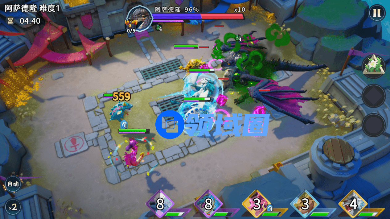 殊不知黑暗正在悄然降临,一头标志着灾厄的魔龙,从天而降。它怒吼着向我们的战龙发起进攻,它喷出紫色的炽焰,高温灼烧着我们的银龙。小魔女龙亚曼拉降临,使用法术消除了灼烧状态。灾厄巨龙虽然躲过了我方的第一波攻势,但仍在风暴龙维西和海龙布鲁的合击之下败下阵来。