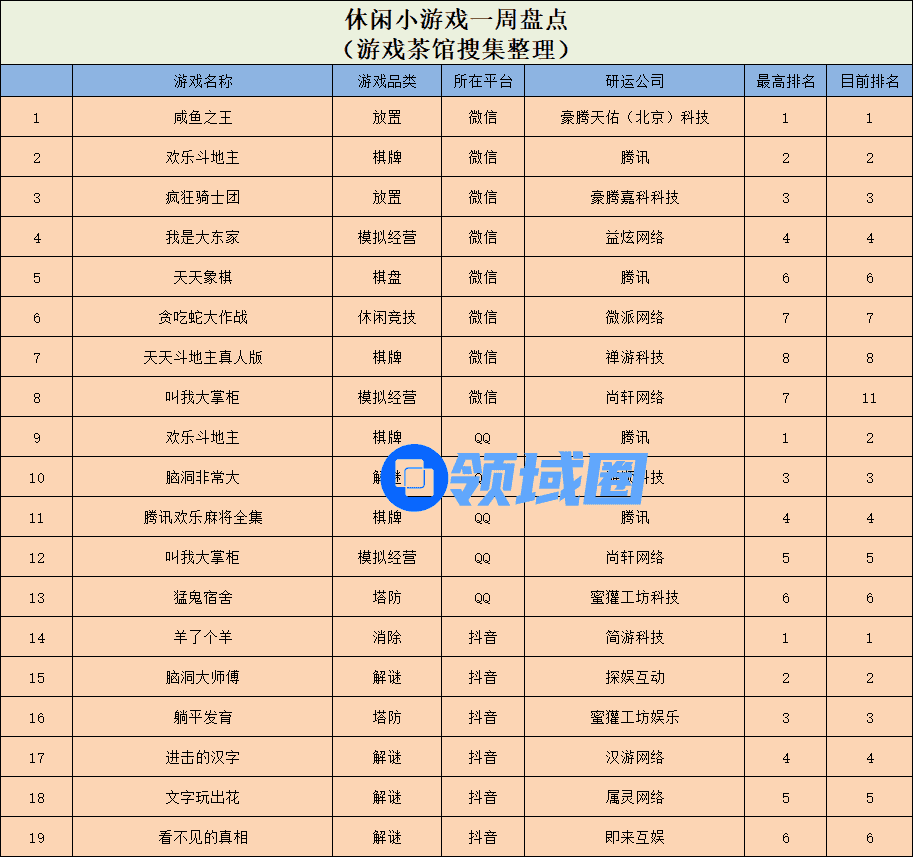 本周休闲游戏方面,在微信小游戏中,豪腾系仍是最大赢家,旗下两款产品《咸鱼之王》和《疯狂骑士团》齐齐登榜人气榜TOP3,且其当前分别位于榜单第1名和第3名。