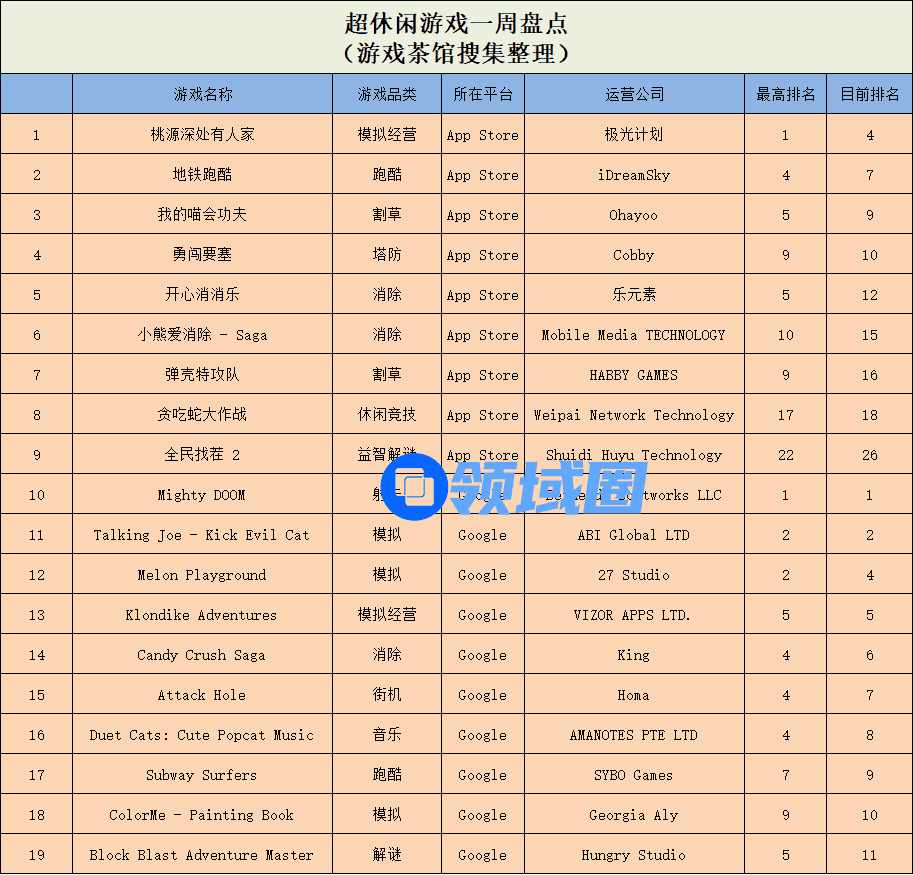 超休闲游戏:《桃源深处有人家》空降魁首,黑化版“汤姆猫”获得玩家喜爱