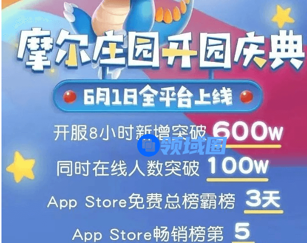 《摩尔庄园》手游上线于2021年儿童节,上线当日游戏新增用户数量超千万,首月新增超3000万用户,上线后《摩尔庄园》手游连续ios免费榜霸榜并多次冲进畅销榜Top5,火爆一时。