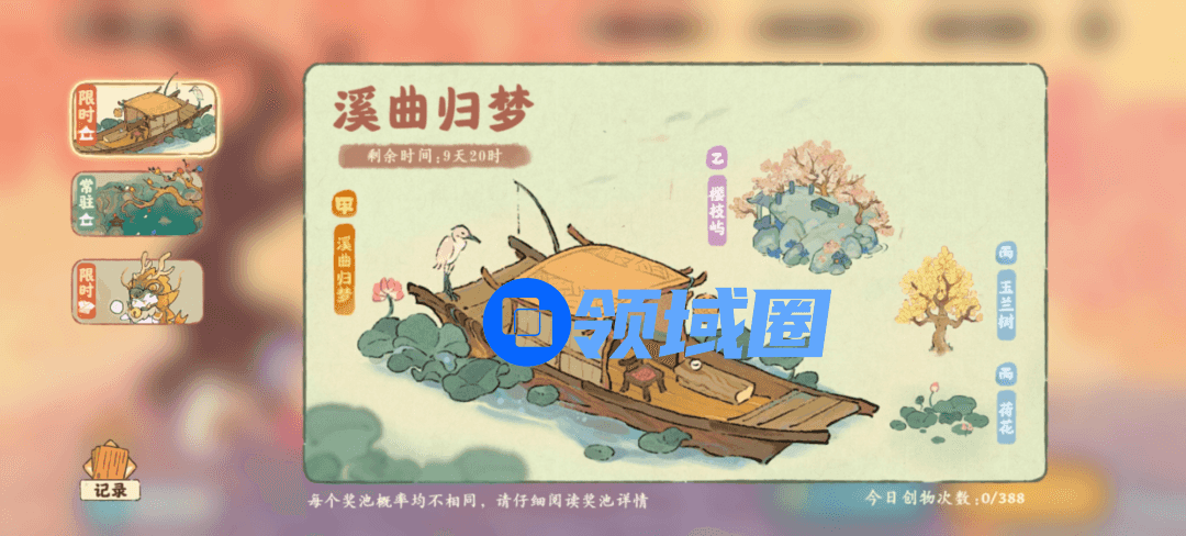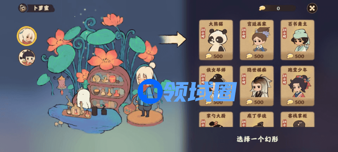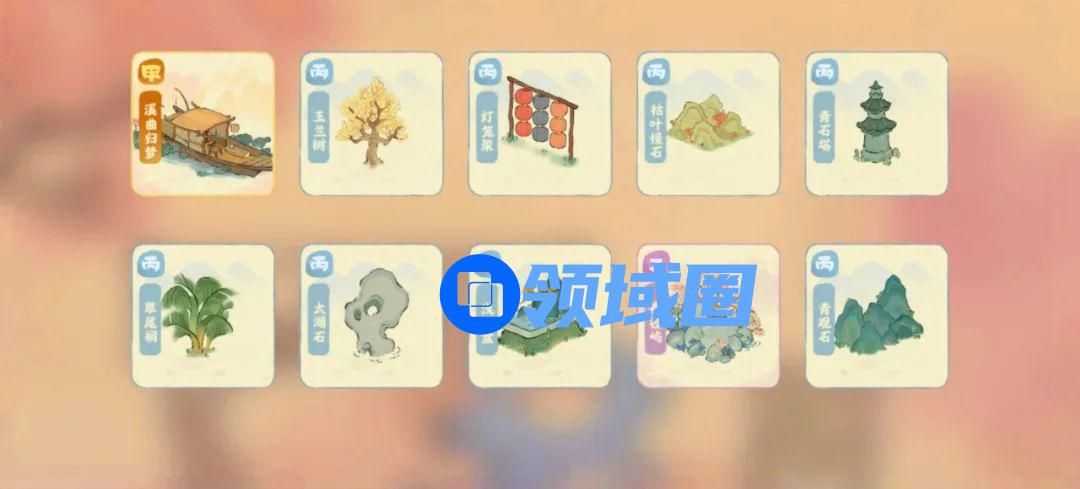 游戏目前的付费点主要在建筑及“幻形”上。前者一方面是游戏随着个人等级提升,用游戏内金币便可购买的萝卜小建筑,另一方面则需要通过“创物”功能抽取。在未氪金的情况下,我也能攒出3个十连抽,还未用完建筑卷轴,已经获得“溪曲归梦”的全套建筑。