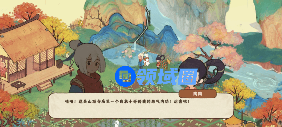 《桃源》的确做到了。游戏采用的是国风青绿画风,温暖恬静的色调点缀山间,无论是晨雨暮风、潺潺流水,还是晚枫早樱,都让人感受到质朴野趣的乡间生活,或是那句“采菊东篱下,悠然见南山”。