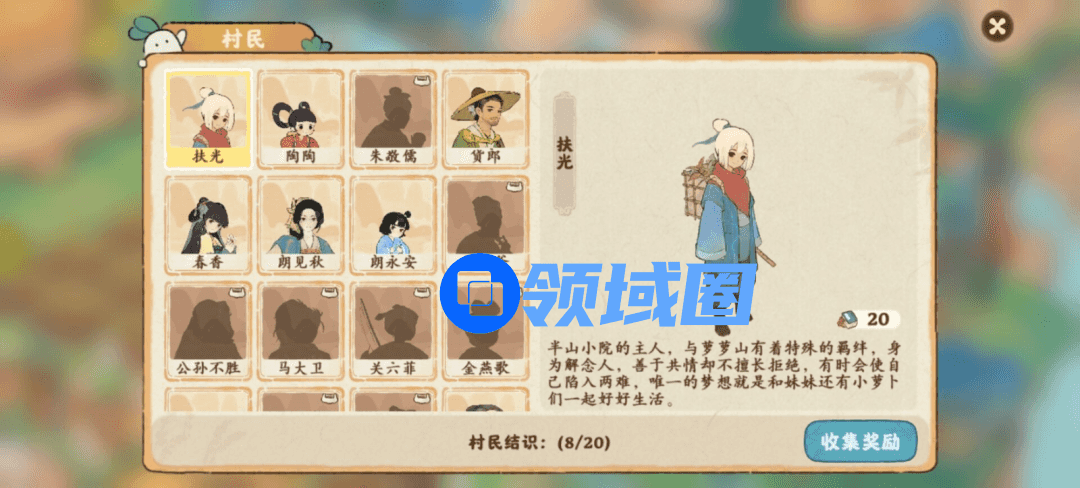 这种经营逻辑赋予了烟火气息。当村民上山,兄妹俩用生活常识开发菜式,做些酸菜豆腐、蛋炒饭等粗茶淡饭招待、叙家常。或是托飞鸟信使寄送他们所需的物品,获得个人经验,提升与村民间的好感。在相处中,村民的故事如碎片拼凑起来。胆小的男孩,还有偷偷在哭的妈妈。她为何而哭呢?兄妹又究竟为何来到萝萝山?这一切都等待玩家去挖掘。