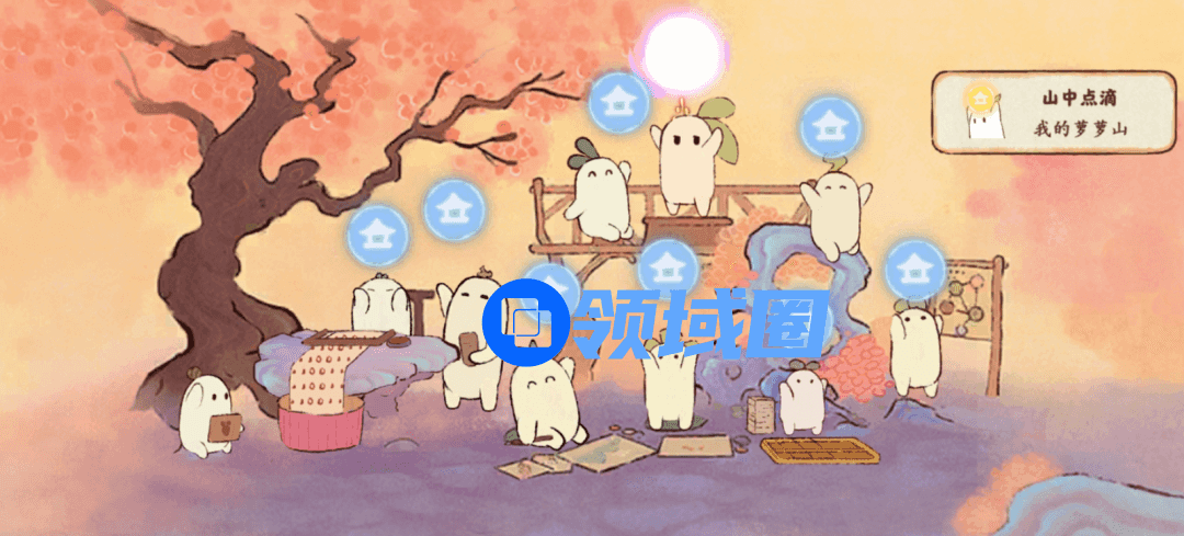 尤为吸引玩家的是萝卜山灵,一个字,萌。有趣的是,叶田说,“萝卜山灵的原型是兔子”,它是美术伙伴为白色耳朵偶然填充绿色的产物。灵感馅饼从天而降,这个创意也就保留了下来。“要设计出避世的桃源,太多人喧闹”,而成群的萝卜山灵则正好。