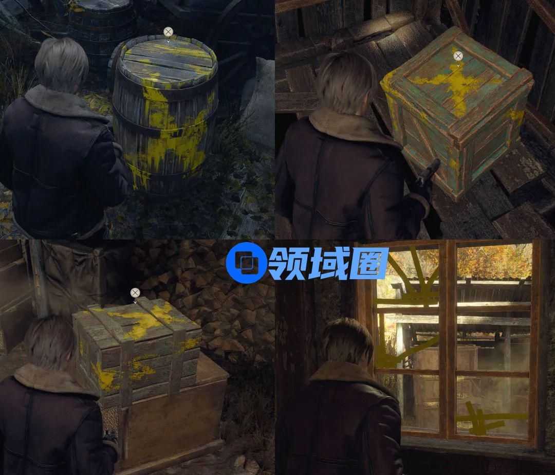 这个思路的进化则是做出很多不一样的互动模型,但都有一个标志性的特征:涂油漆。在所有的箱柜上标志出醒目的黄色,或者在所有可攀爬的边缘蹭上白色,能被打爆的红色油桶炸药,以及一看就能回血的绿色药包。至于流程中其他一些看上去很可疑的锅碗瓢盆,绝对不会有问题,它们没有刷过油漆。