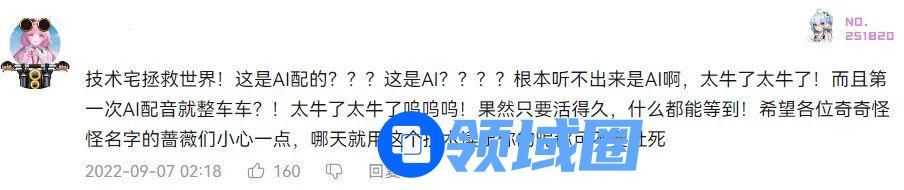 我们从视频下方的评论风向也不难看出,实装的AI配音效果超出了大多数玩家的预期。尽管AI的声音还不“完美”,但是其表现“一点也不AI”,相对自然的声音效果和永远不会塌房的优势让不少玩家直呼“太牛了”!