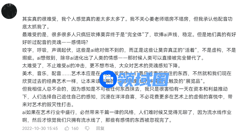 当然,还是有少部分玩家不太能接受AI,认为某些语句的语调、气息和情感仍能听出瑕疵,也有玩家认为没有人类声音情感支撑的纯纸片人,就等于失去了灵魂。