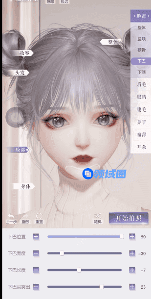 精细到什么程度呢?单一个下巴就可以调整位置,宽度,长度以及下巴尖的突出程度,可以说数值稍有变动就成为另一张脸了。