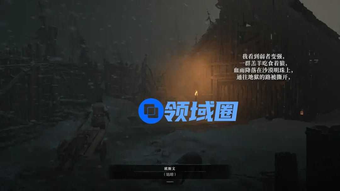 尤其是序章中被“热情好客”的村民们一顿款待,当暴风雪中村民拉着板车,嘴里哼唱着古老的歌谣,画面右侧浮现出诗歌般的字幕,那种来自邪教的怪异感觉油然而生,给我留下了深刻的印象。