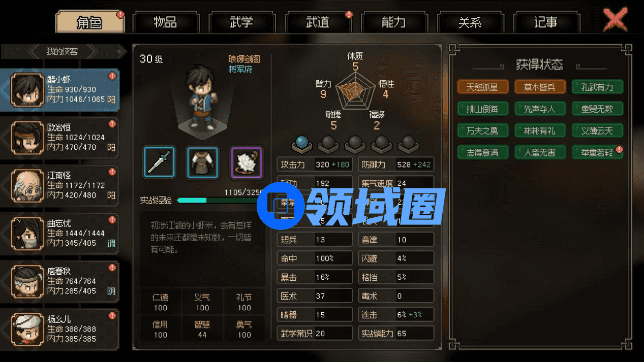 作为一款“江湖模拟器”,最大的乐趣莫过于玩家真正的身处于这个世界,能经历和体验到周遭发生的一切,而不仅仅只是一个局外人。《大侠立志传》通过角色养成、阵营声望、江湖事件来让这个世界变得更为真实,而这一切的核心也是以自由为基础的。