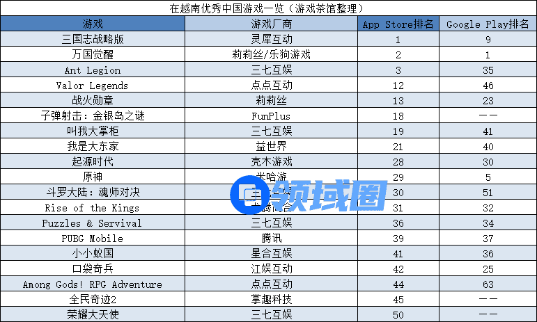 整理范围:越南App Store畅销榜、泰国App Store畅销榜前50名