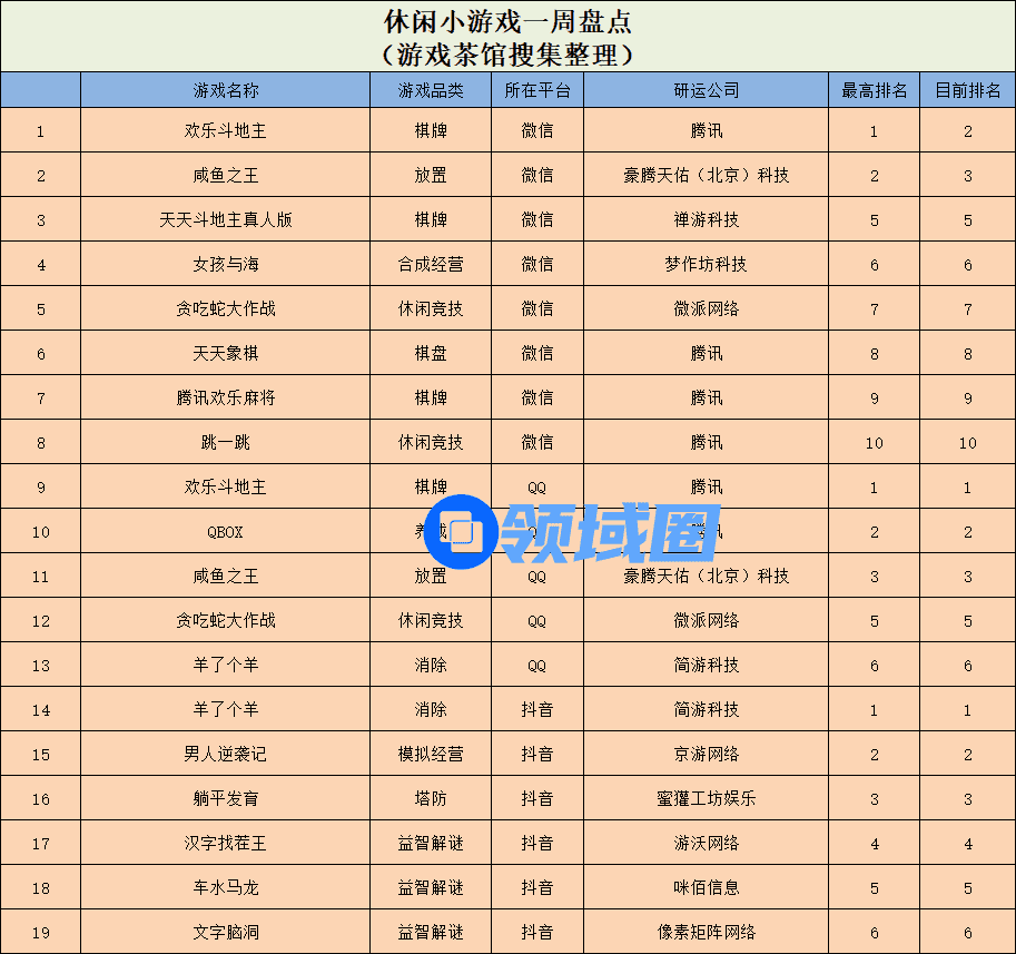 休闲新游周报每周统计微信小游戏、QQ小游戏、抖音小游戏、硬核小游戏以及App Store和Google Play上的新游爆款,并按照分类制作表格,将游戏排名情况等信息公布,希望给到行业同侪帮助。