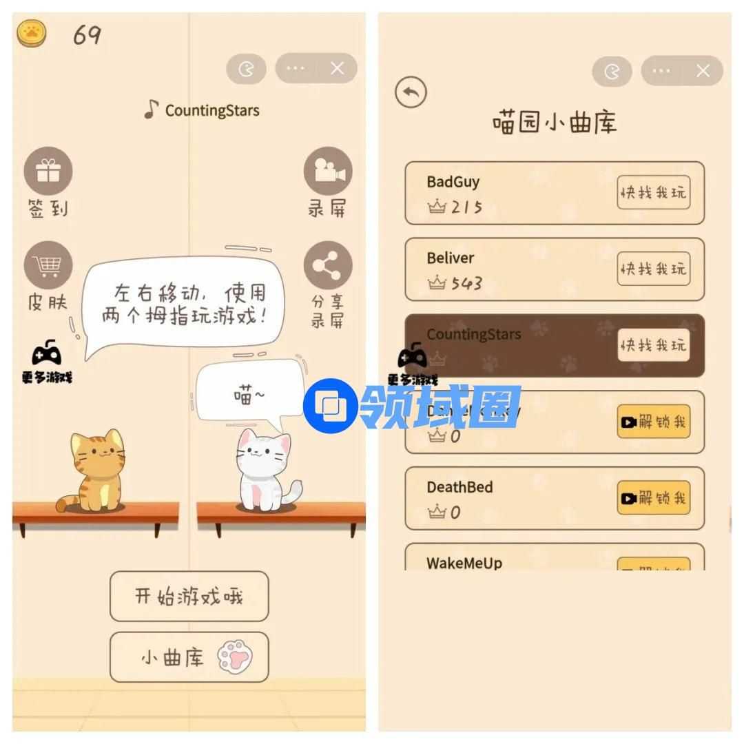 此前,我们已经简单介绍过这款萌系音游,《Duet Cats: Cute Popcat Music》是一款画风十分可爱的音游,玩家只需要根据音乐节奏控制指尖滑动,就能控制屏幕上的两只小猫吃到从天而降的美味,从而获得得分。这款游戏的音乐也很有意思,基本上都是喵语版本的大热单曲双重唱。