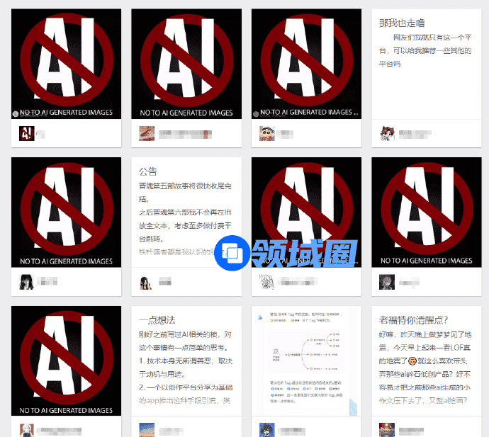 随即有平台创作者表示了对该功能的不满,他们认为AI绘画可能会捕捉平台上的公开作品当素材,无法保证平台创作者的知识产权不受侵害。因此,大量创作者删档销号,退出平台,用行动表示对AI绘画的抵制。