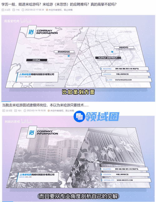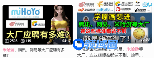 更绝的是,这些卖课账号把每个游戏工种、每家知名游戏厂商都做了一个相应的引流视频,绝不放过任何长尾流量。除了卖课,一些投过米哈游简历的UP主也通过视频的方式,为自己的自媒体引流。