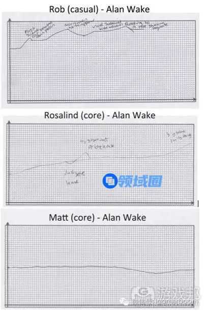 比较玩家自画的《Alan Wake》体验过程,表明休闲玩家比硬核玩家更投入。之前描述的关键时刻也说明,硬核玩家只在某些时候受到惊吓,而休闲玩家却认为整个过程都很可怕,显然,后者也比前者更享受这款游戏。
