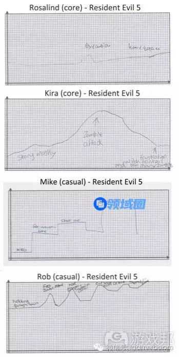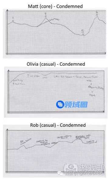 硬核玩家直到游戏的最后还是很投入,他们的反应产生了明显的尖峰和低谷。休闲玩家的兴趣就没有那么浓厚了,当然也没有那么害怕,不过仍然认为第一次交峰确实让人印像深刻。