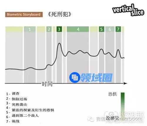 以上情形吓倒了几乎所有玩家,只有Kira和Matt这两位玩家被hold住了,尽管他们也被其中至少一种情况吓到。另外,GSR发生了显著变化,呼吸情况也有所改变。玩家们遇到《死亡空间2》的惊悚场面时,叫得特别凶,所以我们很容易瞄准特殊情绪点(恐惧)的时刻,且玩家事后受访时仍然记得各个特别惊吓的地方。
