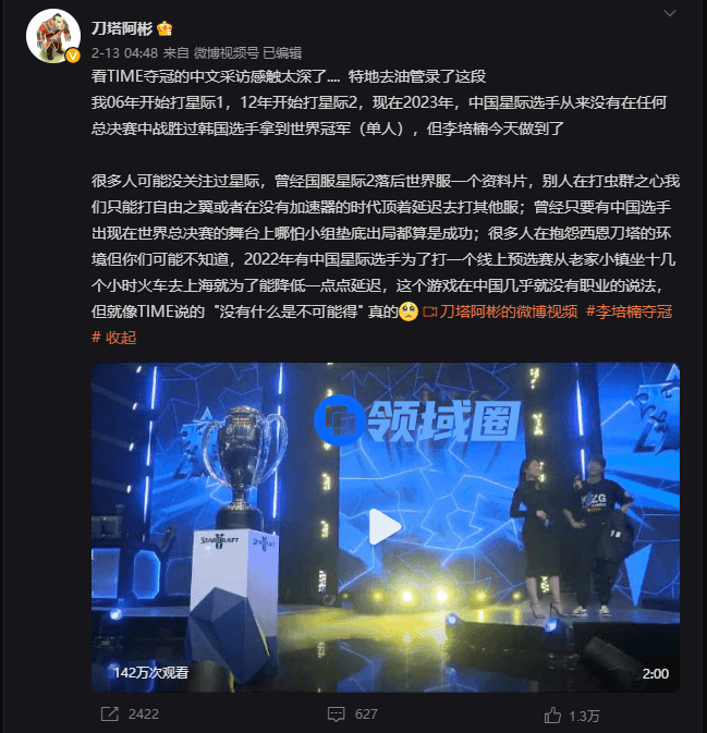 2023年2月13日国内的凌晨,卡托维兹的线下场馆,在全场高呼李培楠新ID“Oliveira”的声浪中,他捧起了25年来中国星际史上首个最高规格赛事的冠军奖杯。
