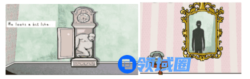 最终,路易斯在2013年发布的《轮回的房间》成了参考原型。团队曾在采访中说,“没有它就没有整个锈湖系列”。打开《轮回的房间》旧版,我们的确能从这款游戏中看到许多熟悉元素。如从立钟中倾倒出的裸男、照镜子的恶鬼、还有与《逃离方块:四季》配色相似的壁纸。