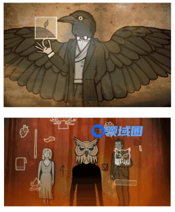 作为解谜游戏,它是独特的。独特简约的画风,如美剧《双峰》中真实又异样的氛围,奇怪的符号信息,灵魂已腐朽的恶鬼,顶着猫头鹰、乌鸦、梅花鹿等动物头的“人”,还有神秘方块;更别提解谜的“超现实”体验,虾里藏着钥匙,钓鱼钓上一只手,耳蜗里竟藏着可一路向下的楼梯……