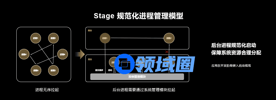同时,ArkUI上还构建了全新的开发模型“Stage”模型,Stage是一个规范化进程管理开发模型,它通过构建十多种后台进程拉起规范,使得应用在开发阶段就根据进程规范拉起,避免了后台进程无序侵占系统资源。从而保障了进程环境从“无序”到“有序”,优化了应用体验。