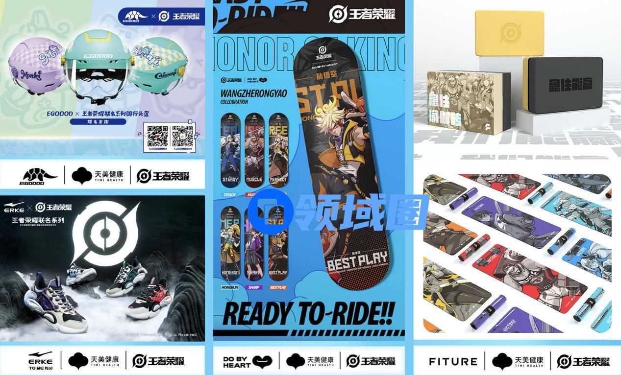 不止于智能硬件设备,天美还积极探索与运动健身品牌的游戏IP授权合作,以IP兴趣为导向为用户提供全方位的运动装备,进一步调动大众的运动积极性。其中王者荣耀与鸿星尔克合作的运动鞋服、与DBH合作推出的滑板、以及与易酷达合作的运动安全头盔等运动周边,也将作为活动奖品送出,吸引了不少游戏粉的参与,不难看出天美旗下的游戏产品在年轻群体间的广泛影响力。同时,周边产品的推出也为游戏IP融入生活体育消费场景提供了更多的想象空间。