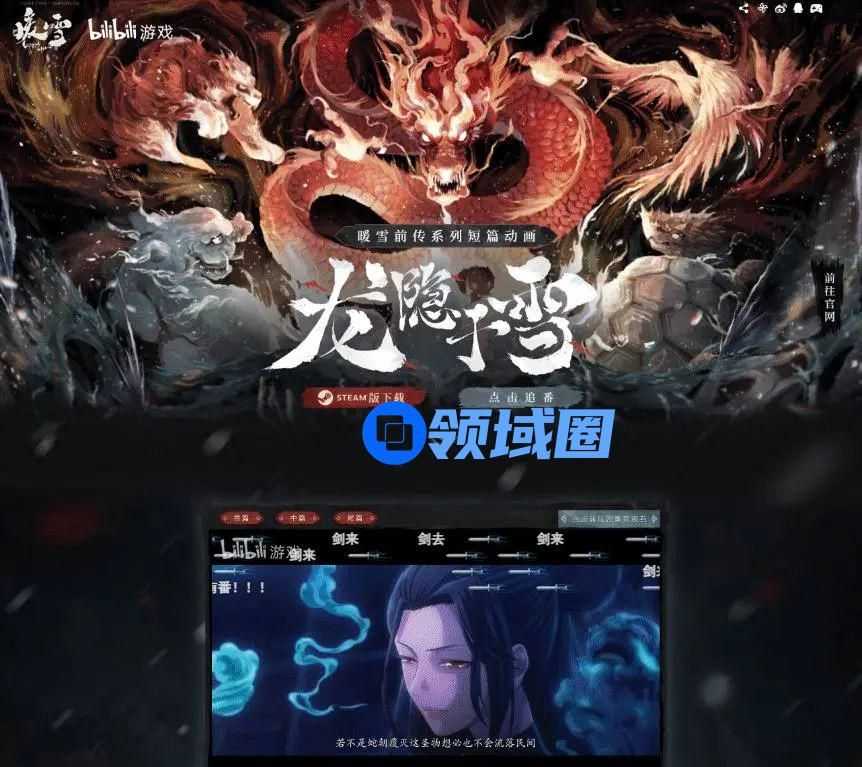 在《暖雪》还未上线之前,B站游戏就联合国内三家顶级动画制作公司,为其量身打造了三集动画《龙隐于雪》,不仅播放量超过860万,还登上了B站游戏国产动画榜第一,实数打响了游戏宣发的第一炮,在IP口碑和游戏的心愿单上都有一定的拉升。