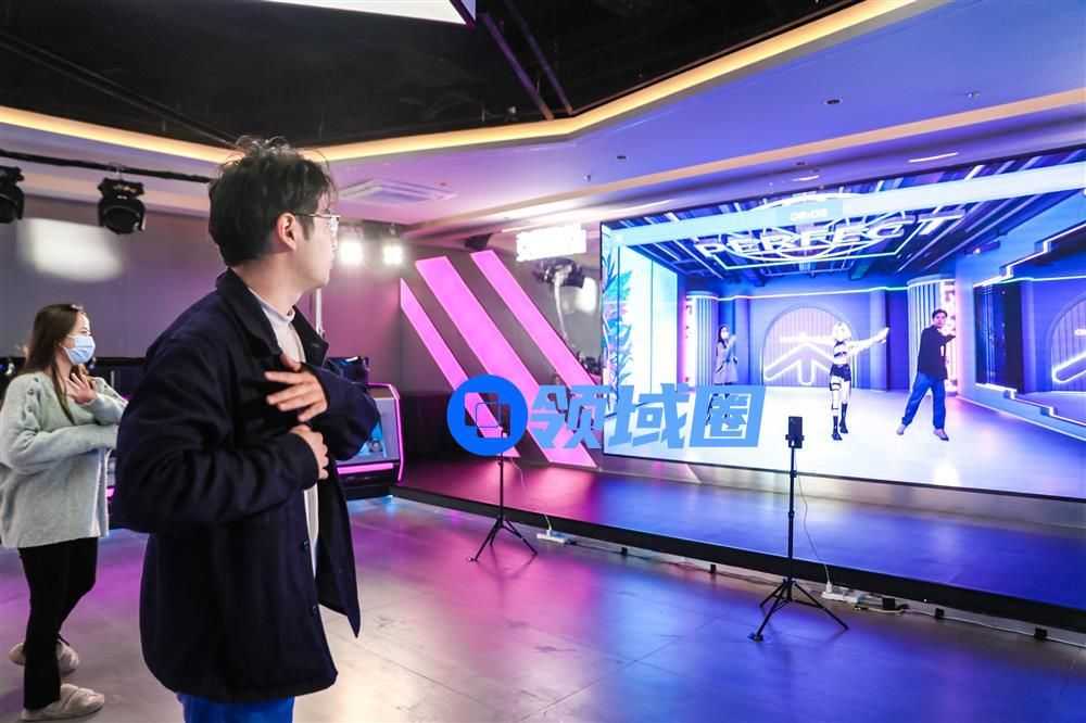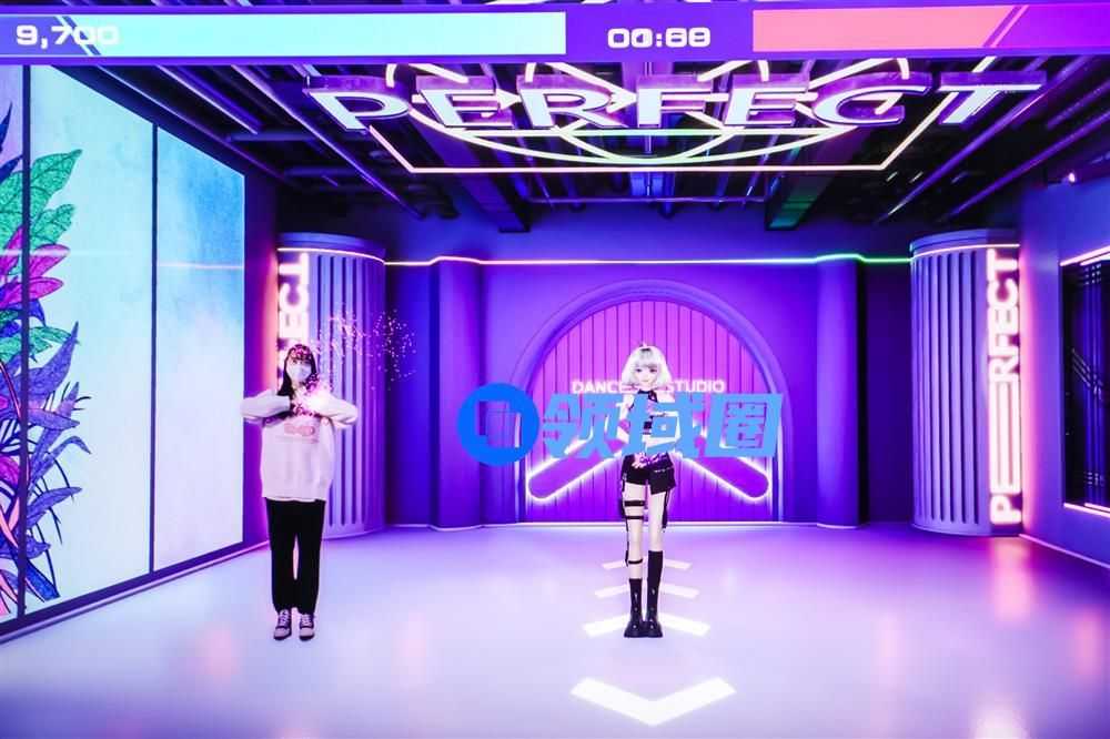 在互动环节,参与体验的观众只需站在互动区域,其真人形象就能够通过手机摄像头投射在虚拟场景中,其在现实世界中的一举一动也会实时同步至屏幕中,舞蹈挑战开始后,系统通过判断观众的骨骼姿势进行打分评级。