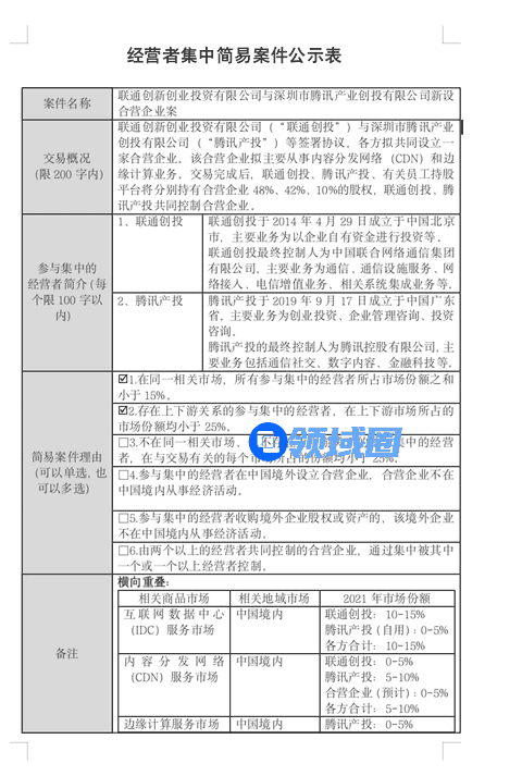 相关简易案件公示表显示,新设合营企业拟主要从事内容分发网络(CDN)和边缘计算业务。交易完成后,联通创投、腾讯产投、有关员工持股平台将分别持有合营企业48%、42%、10%的股权,联通创投、腾讯产投共同控制合营企业。