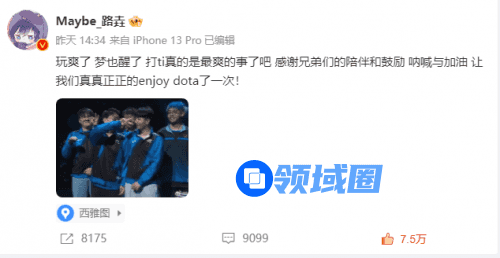 而为了白嫖星琼大量涌入的吃瓜群众,也让往年圈地自萌的DOTA圈子变得热闹非凡,他们很大程度上分摊了核心玩家的情绪,无论是胜利和失败都不会太过极端。