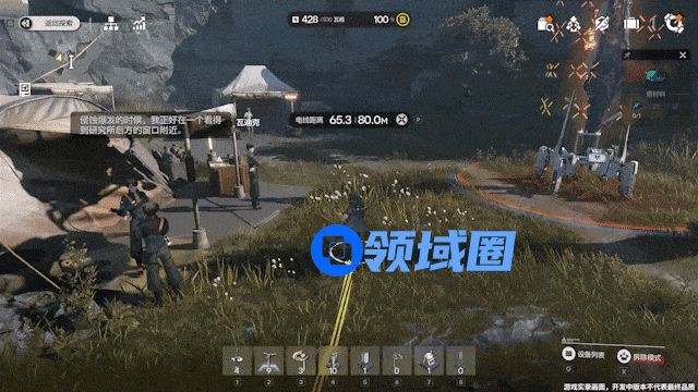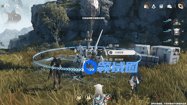 有了【供电桩】后,官方又相继演示了建设【医疗施术塔】和激活【便携营地】的交互操作。前者可以为玩家的队伍回血,因为根据后面的战斗演示,在野外战斗后玩家队伍是不会自动回血的,所以需要基础的后勤与补给,而【便携营地】似乎是野外的中立建筑,被玩家解锁后会直接成为据点,可以休整、编队、提交资源等。