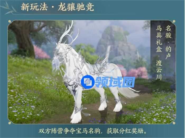 全新玩法“龙骧驰竞”正式上线!全新名骏坐骑【的卢】限时随机刷新,双方阵营争夺捕获,成功捕获后还可摸取宝堆奖励,参与坐骑与马具拍卖分红!