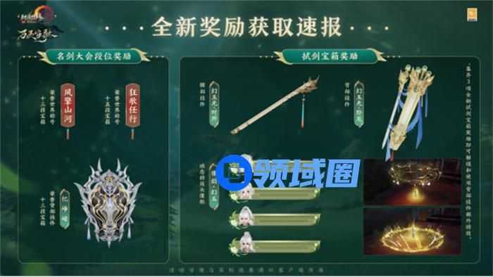 峥嵘岁月几经秋,万里关山一梦留,新资料片“万灵当歌”精美好礼不容错过!神威宝箱、师徒值商店、拭剑宝箱和名剑大会段位奖励缤纷来袭,达成指定条件还可解锁更多精彩表现!剑动天地倾,狂歌任我行,新名望外装免费奖励【思海】更添惊喜,不要错过哦!